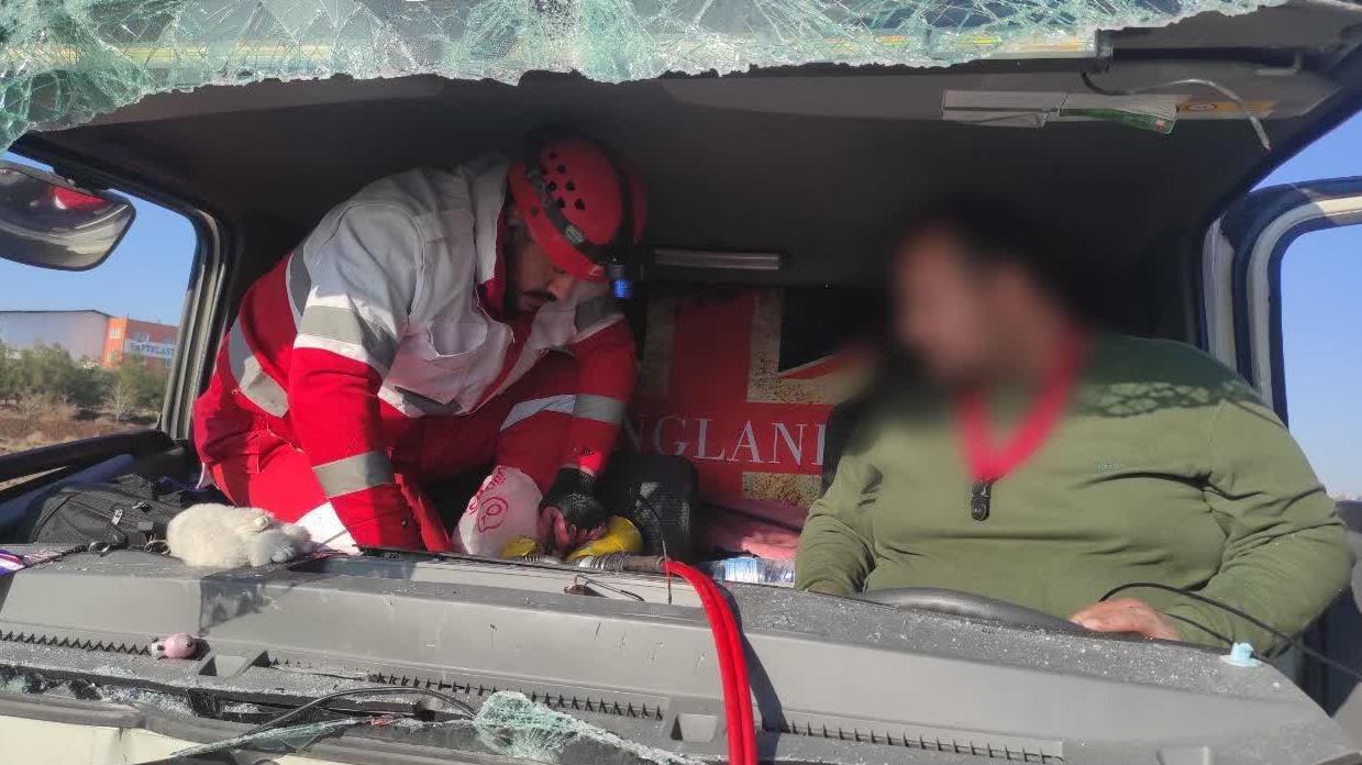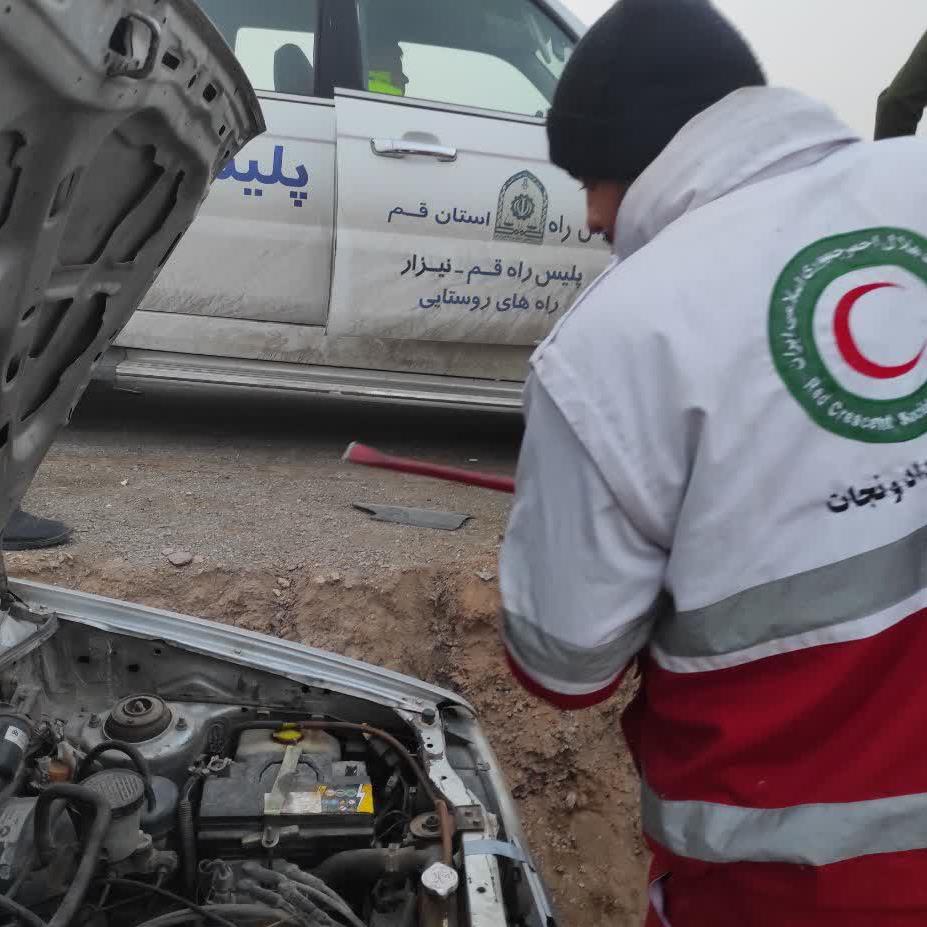 نجات راننده محبوس شده در تصادف سلفچگان به دلیجان توسط هلالاحمر قم