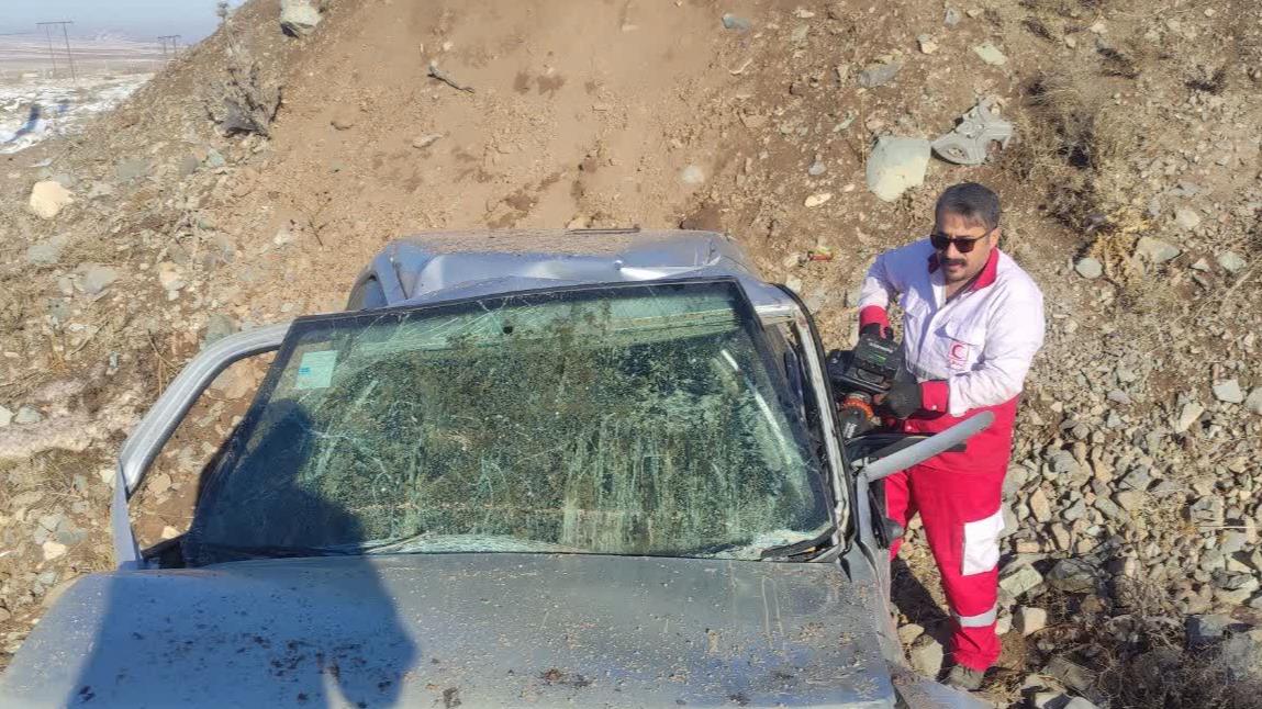امدادرسانی هلال‌احمر قم به مصدوم خودروی واژگون شده در محور سلفچگان به اراک