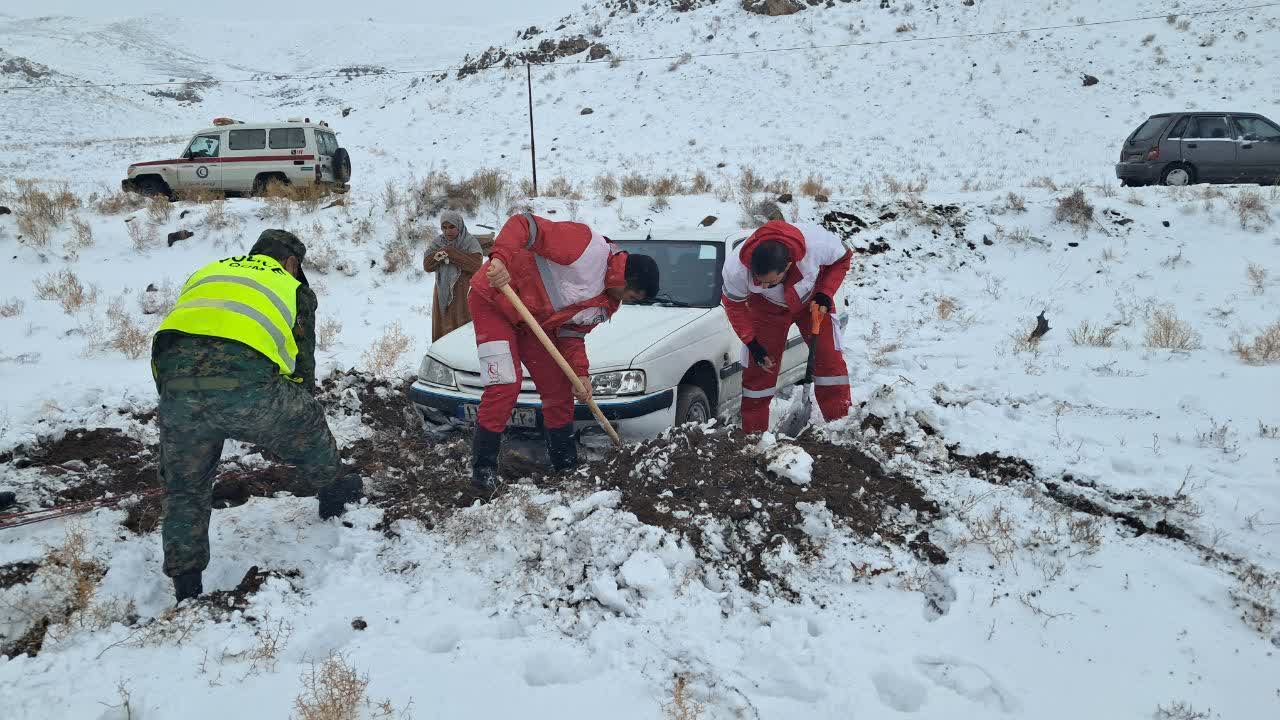 خدمت رسانی نجاتگران هلالاحمر سراسر استان قم در پی حوادث جوی و متأثر از برف و کولاک در محورهای استان