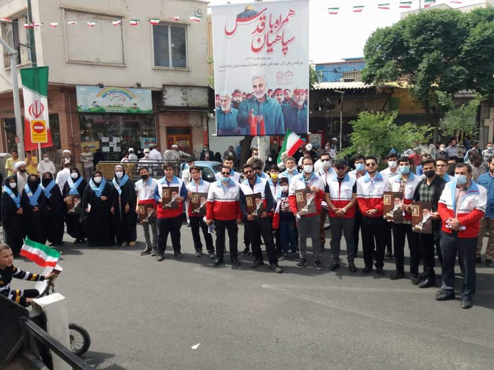 پوشش امدادی روز قدس توسط هلال احمر استان قم/ حضور پرشور کارکنان، جوانان، امدادگران و داوطلبان در راهپیمایی روز قدس/ گزارش تصویری