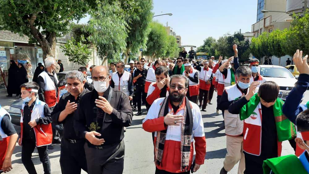 گزارش تصویری اقامه دسته عزاداری رهروان حضرت علی اکبر(ع) هلال احمر قم در روز هشتم محرم الحرام