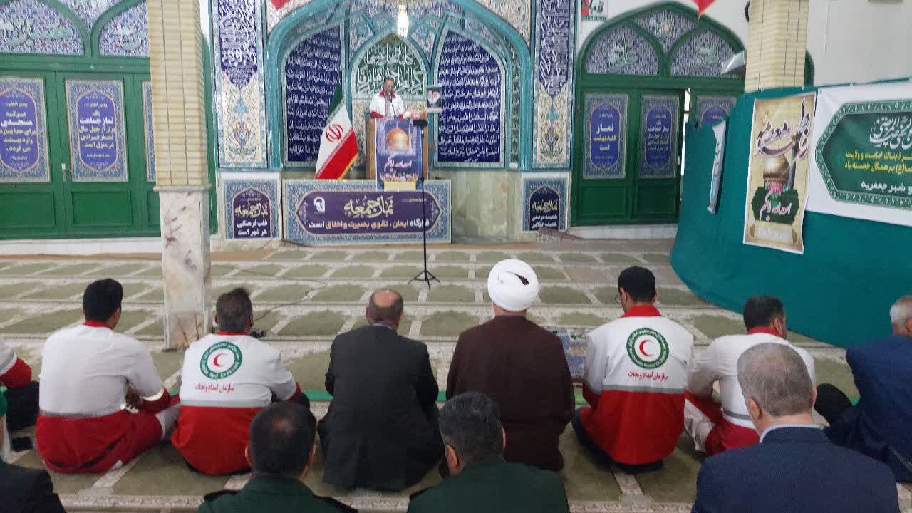 پیش از خطبه‌های نماز جمعه این شهرستان علی اصغر سلیمانی معاون امداد و نجات جمعیت هلال‌احمر استان قم گزارشی از فعالیت‌های هلال احمر در سال گذشته ارائه و از فعالیت و مشارکت خیرین این شهرستان جهت احداث پایگاه امداد و نجات هلال احمر تقدیر و تشکر کرد.