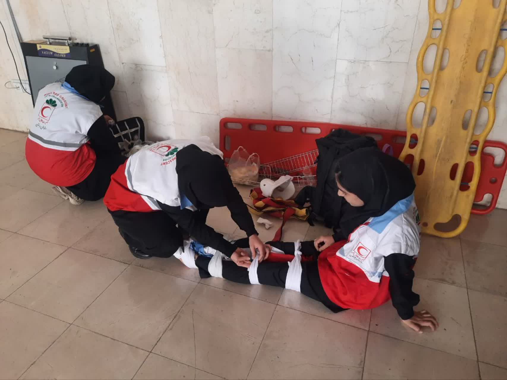 اجرای مانور امدادی کانون دانشجویی هلال‌احمر در دانشگاه قم