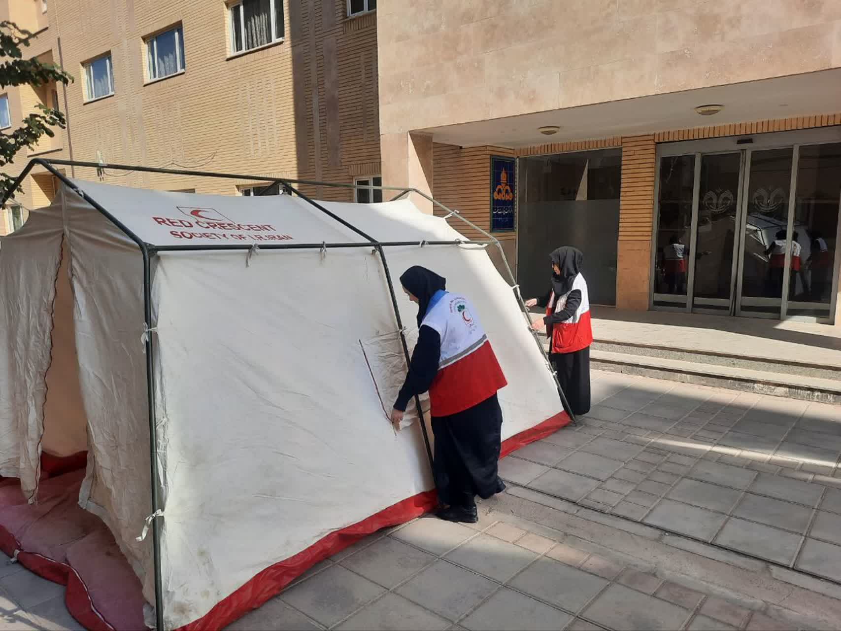 وی افزود: چادرهای اسکان اضطراری در محل امن این دانشگاه، برپا و مصدومین آسیب‌دیده پس از پانسمان و بانداژ، از ساختمان‌ها به این چادرها منتقل شدند.