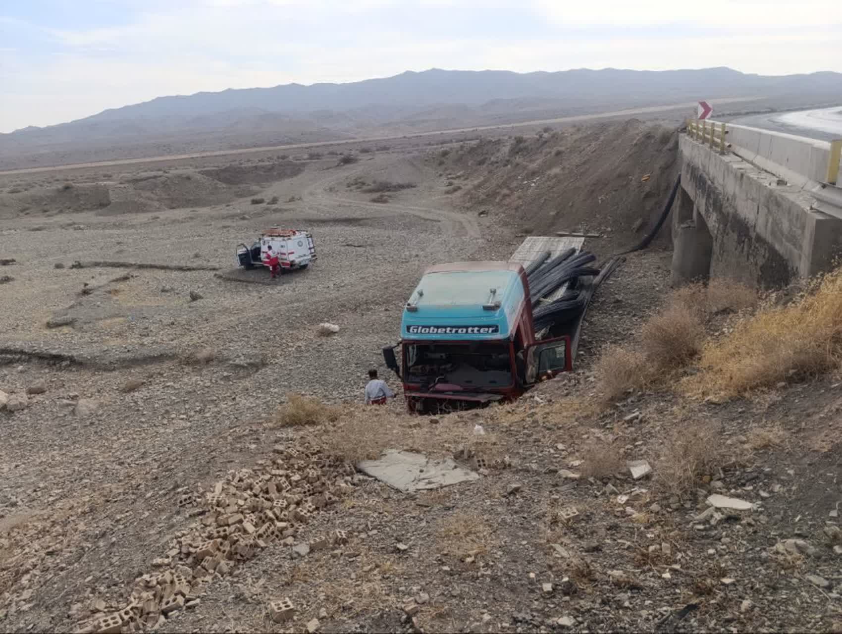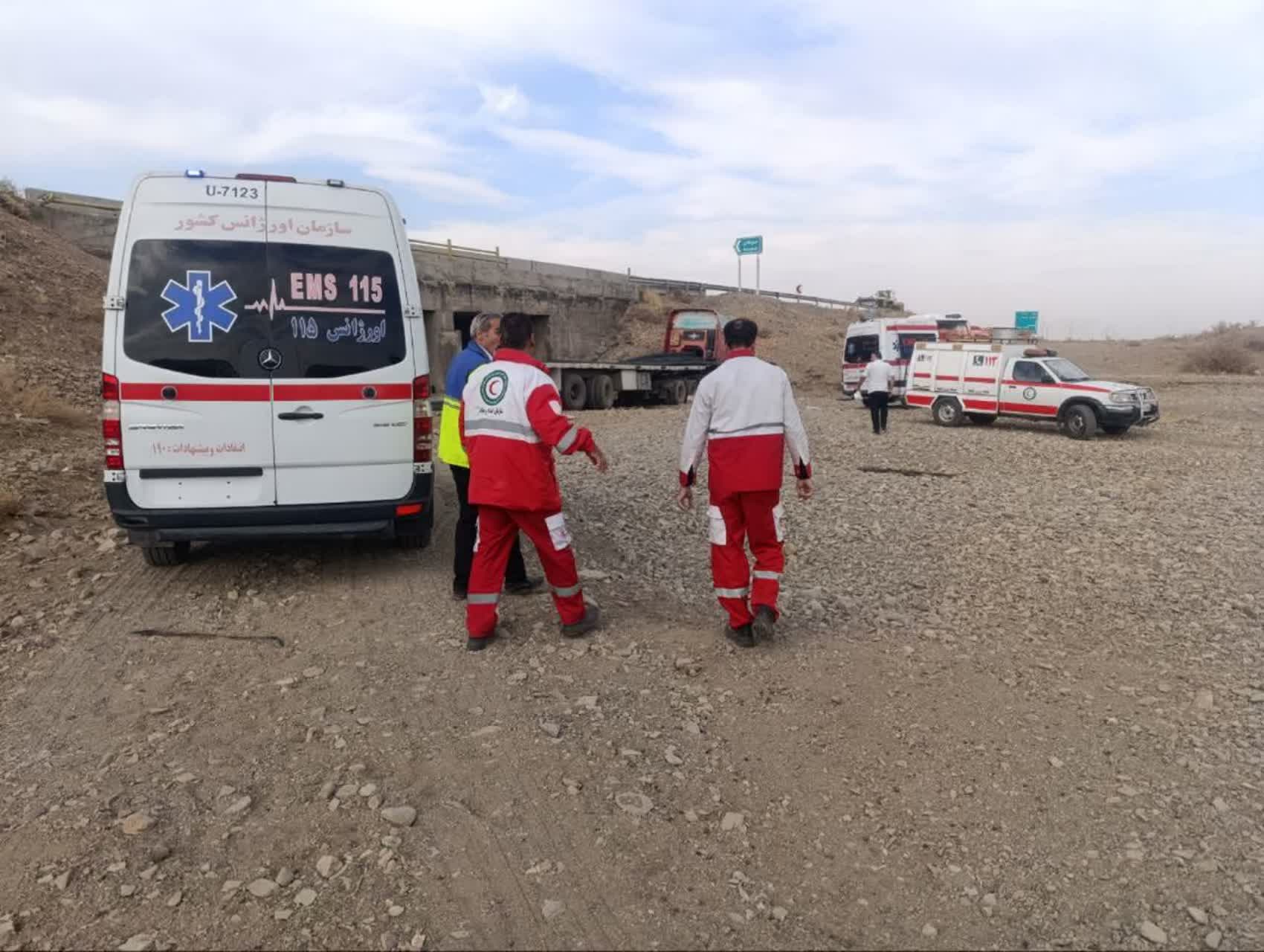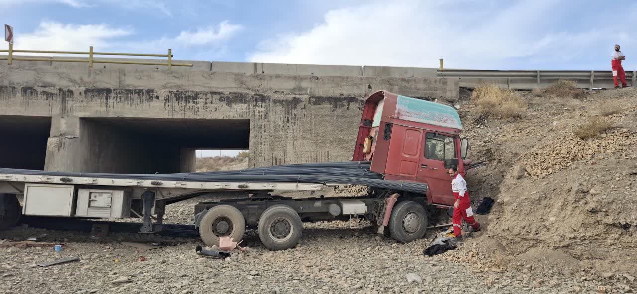 سقوط تریلی 18چرخ در محور قدیم ساوه به سلفچگان 2 مصدم به همراه داشت