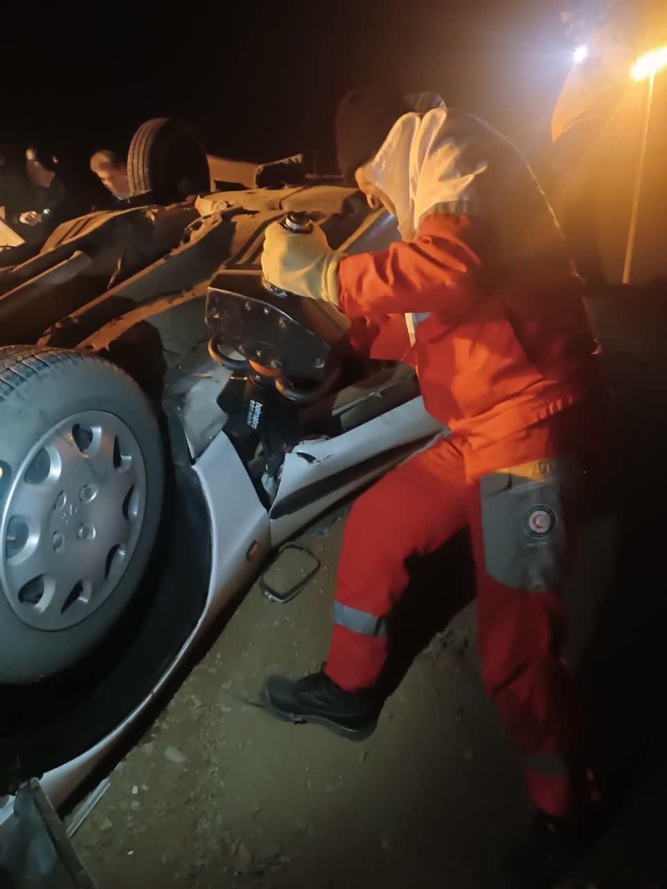 وی ادامه داد: نیروهای امدادی پایگاه امداد و نجات ایرانی بلافاصله به محل حادثه اعزام شدند و اقدام به تثبیت صحنه‌ی حادثه و رهاسازی مصدومین محبوس داخل خودرو نمودند.