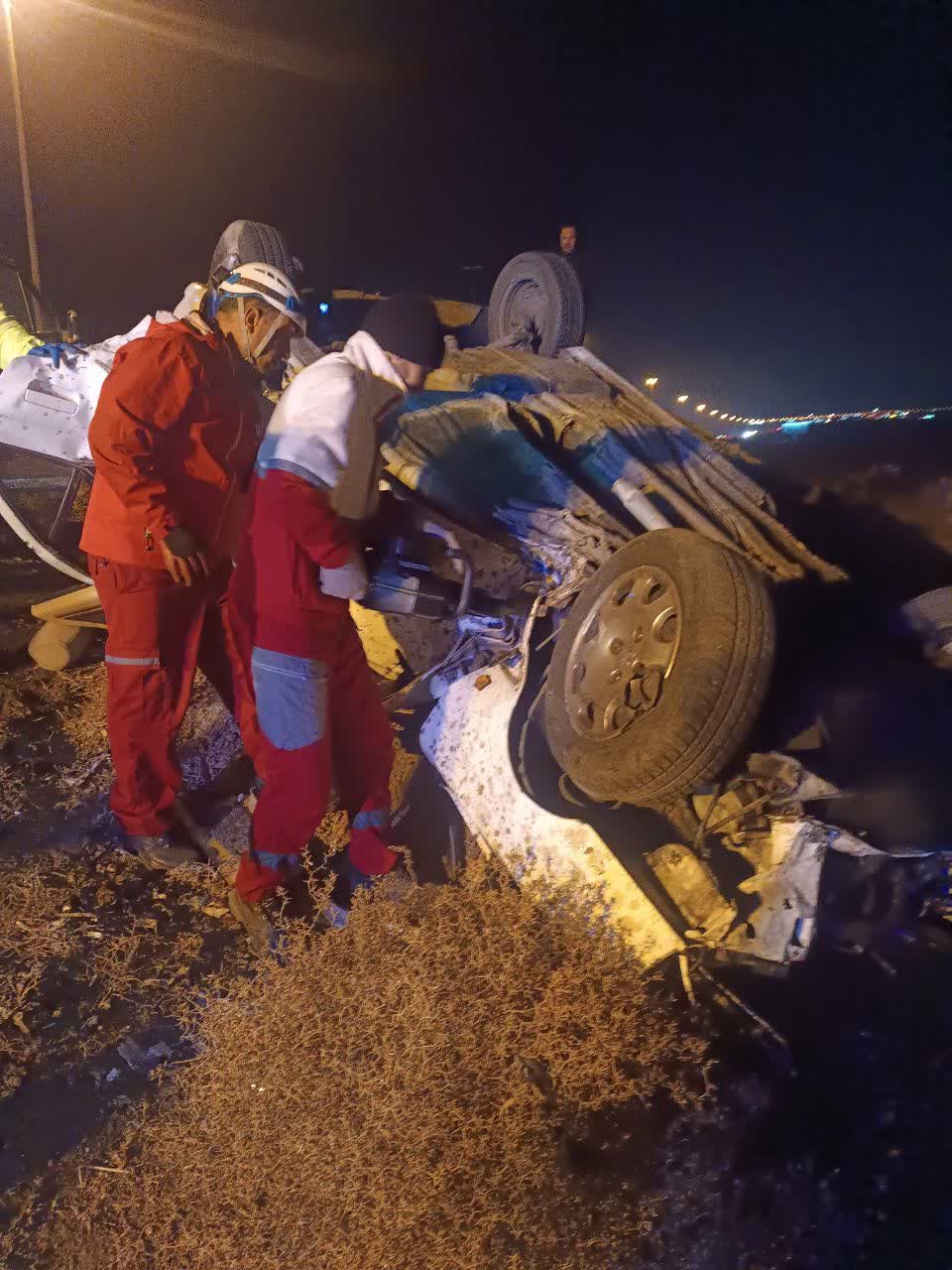 ۲ مصدوم و یک کشته بر اثر واژگونی پژو پارس در اتوبان قم به تهران