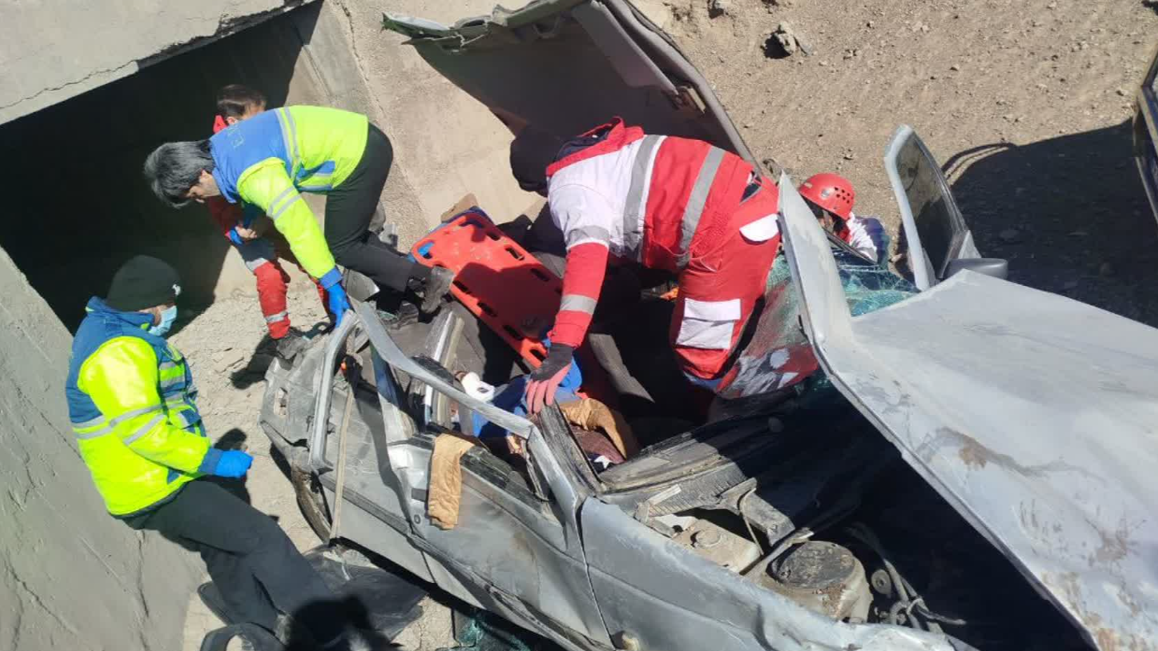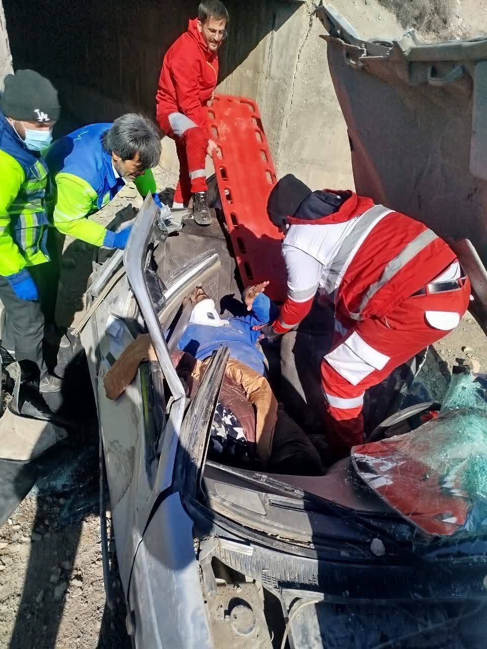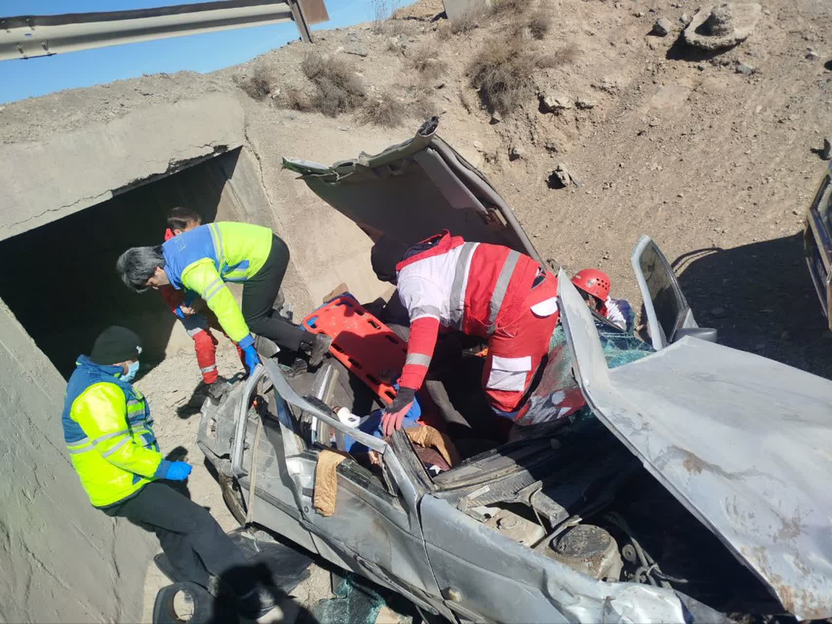 امدادرسانی هلال‌احمر قم به مصدومین خودروی واژگون شده در محور سلفچگان به اراک